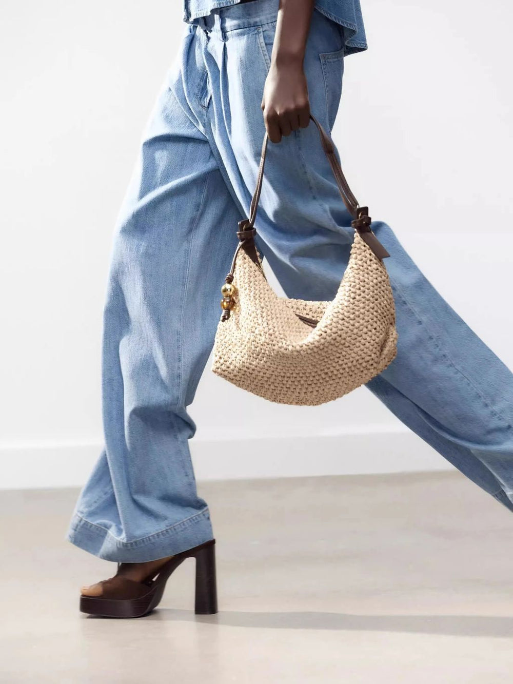 Crescent stråtaske i elegant sommerdesign i naturmateriale