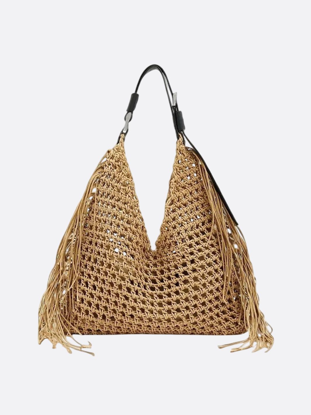 Skuldertaske i strå og hæklet design i boheme stil