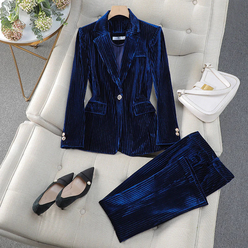 Formelt skræddersyet jakkesæt med lang blazer til kvinder
