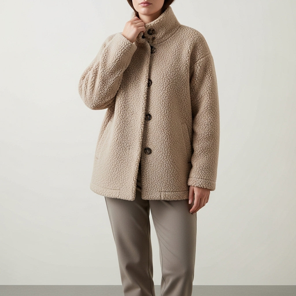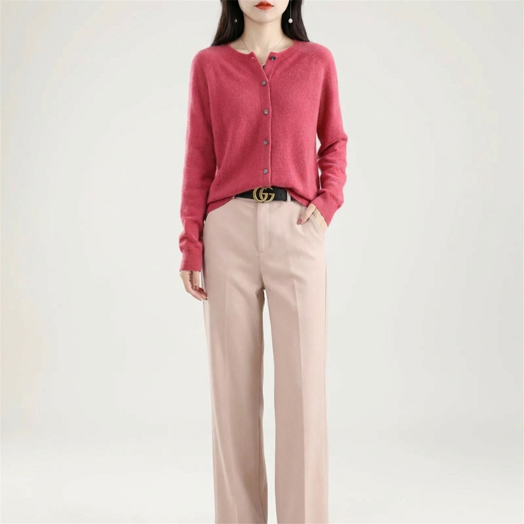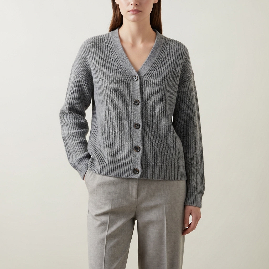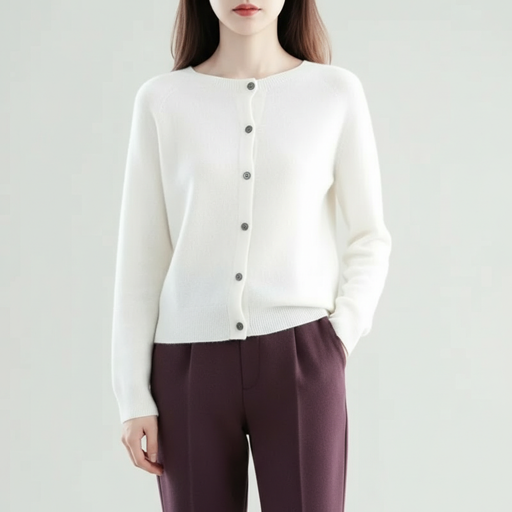 Klassisk langærmet sweater i merino- og uld med knapper til kvinder