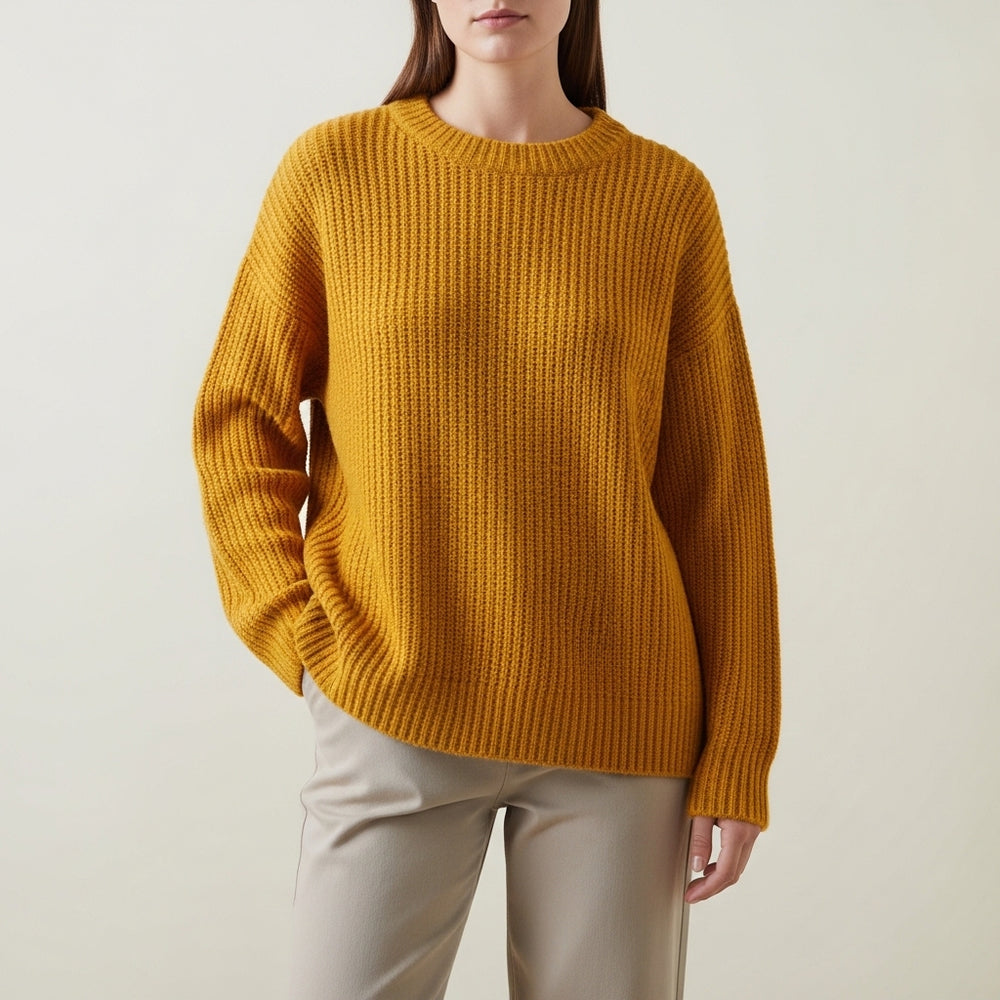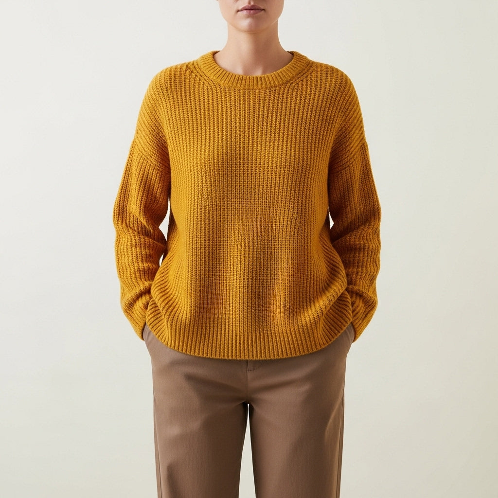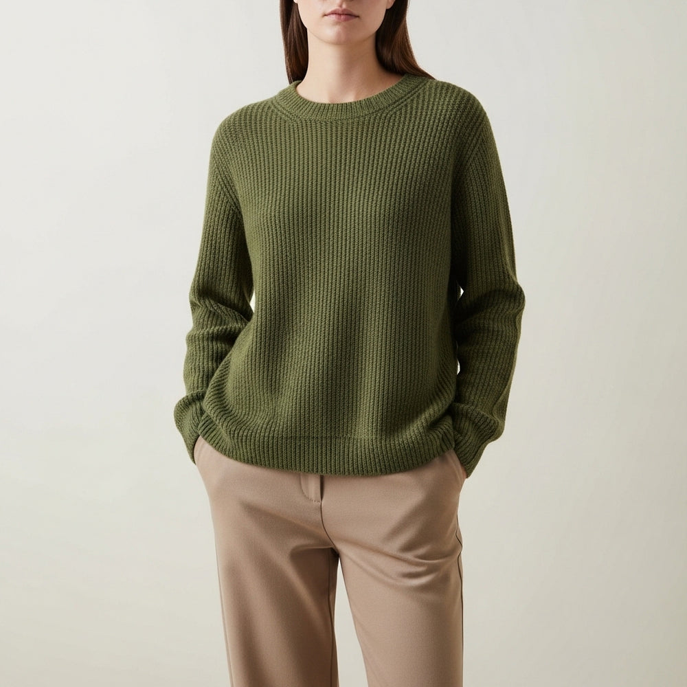 Langærmet ribstrik-sweater til kvinder