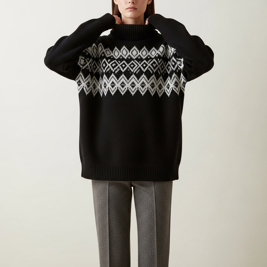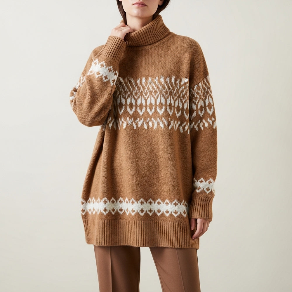 Mønstret oversized rullekravetrøje til kvinder