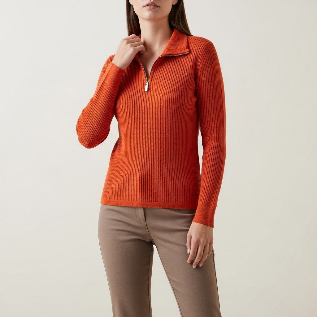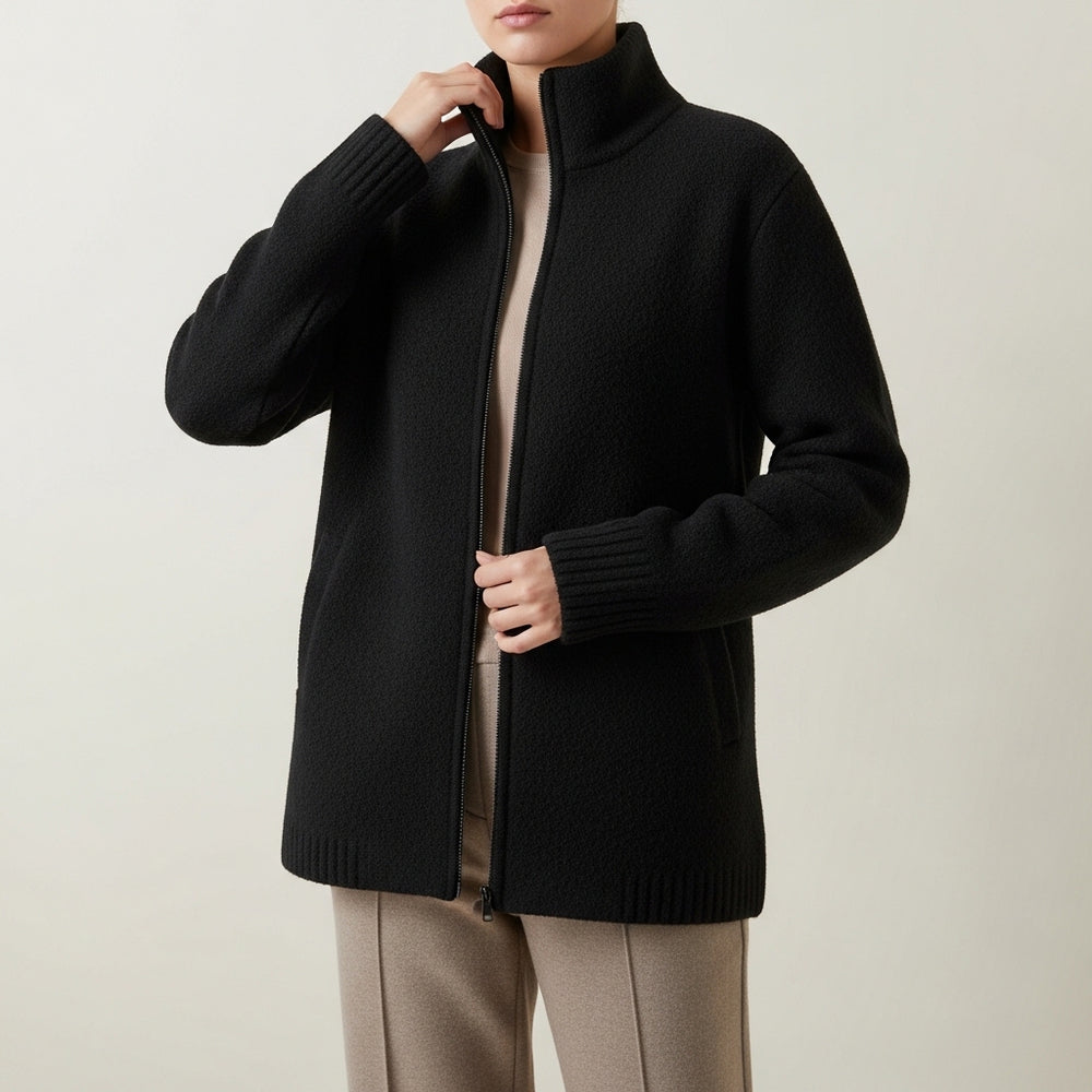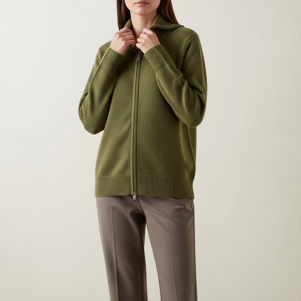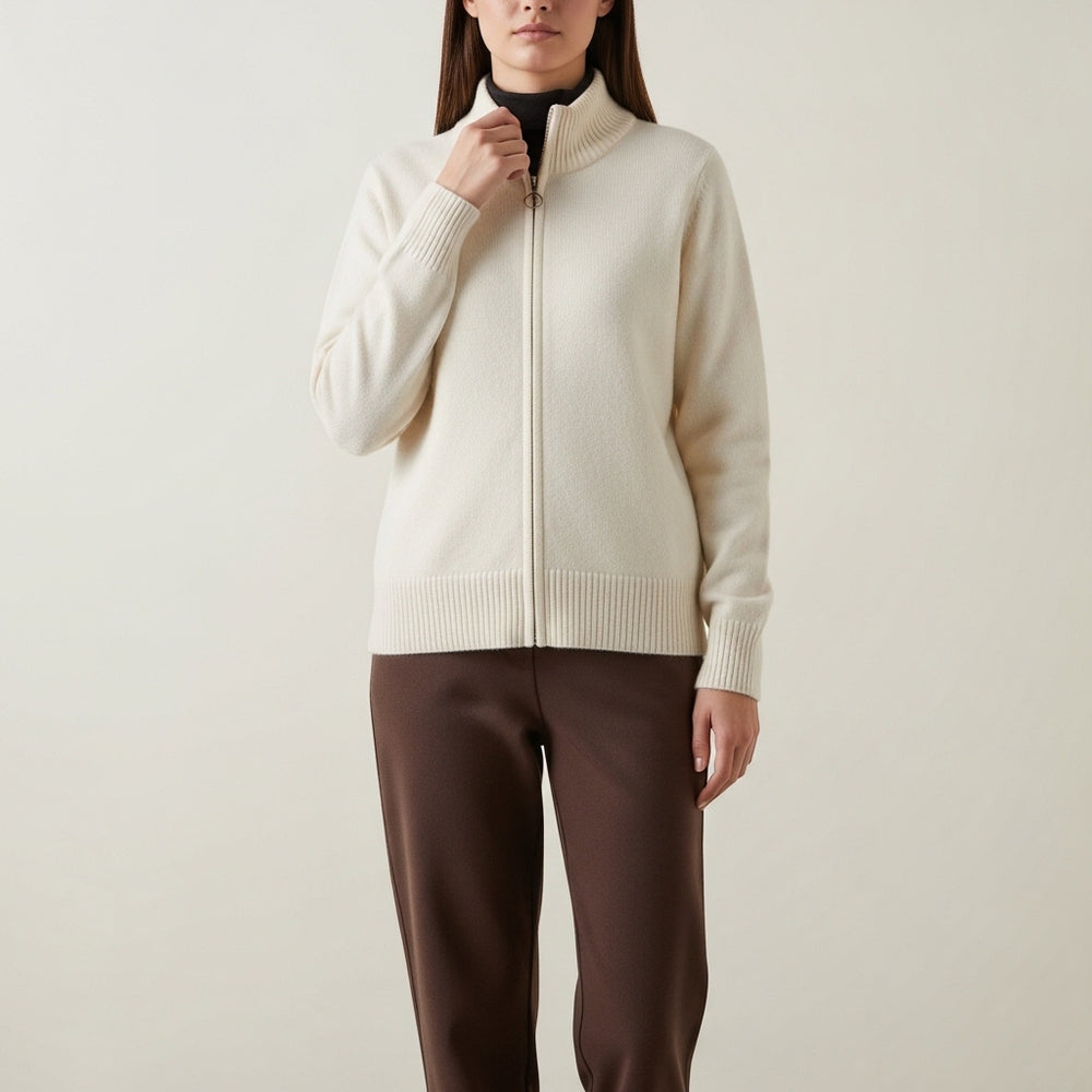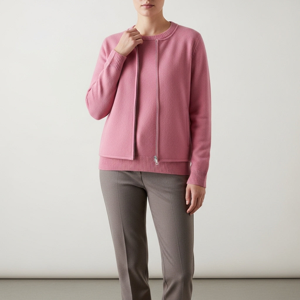 Striktrøje til damer med lynlås