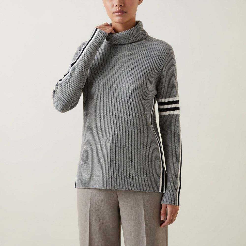 Rullekravetrøje i ribstrik til damer med sidestriber
