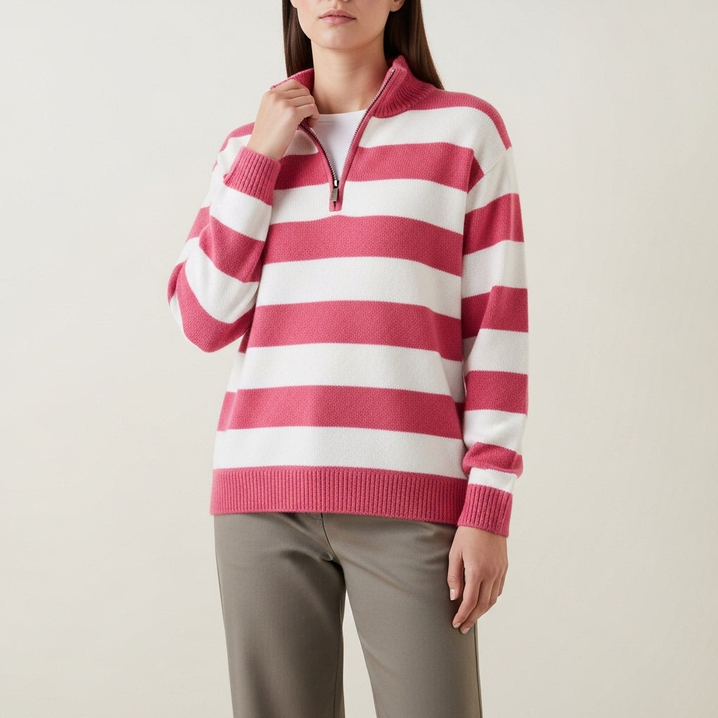 Stribet pullover-striktrøje til kvinder