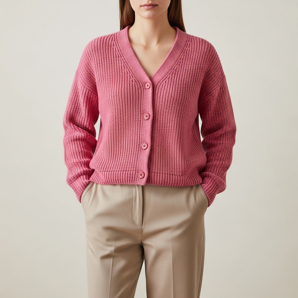 V-hals striktrøje til kvinder med knaplukning