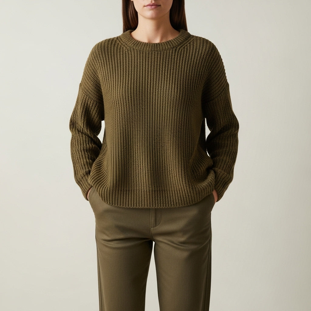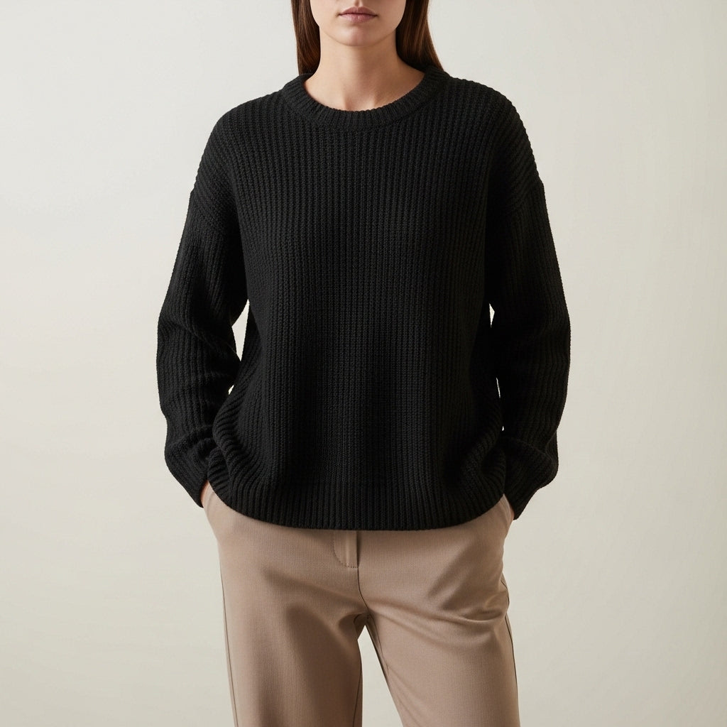 • Klassisk ribstrik skaber en tidløs tekstur, der gør det nemt at style trøjen til enhver anledning.