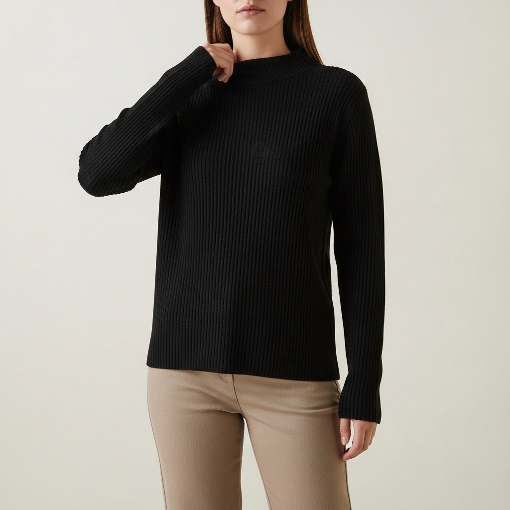 Langærmet ribstrik-sweater til kvinder