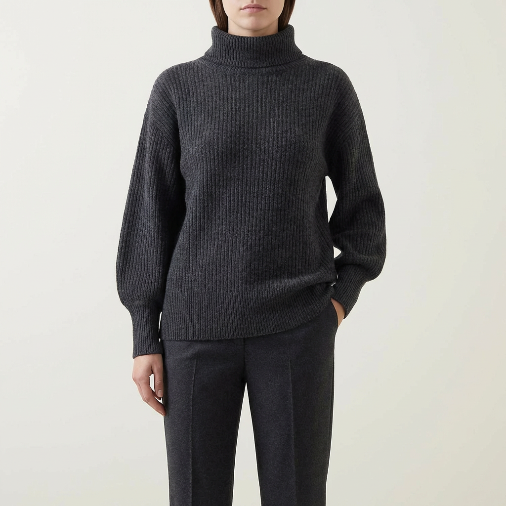 Find den perfekte balance mellem luksuriøs komfort og et moderne udtryk med vores ribstrikkede sweater med vandfaldsudskæring. Denne vinterstrik er designet til at give dig en flatterende silhuet, mens den bløde tekstur holder kulden på afstand. Med sit unikke, draperede fald ved halsen er det den ideelle feminine overdel til både hverdag og festlige lejligheder, hvor du ønsker at føle dig både varm og stilfuld.