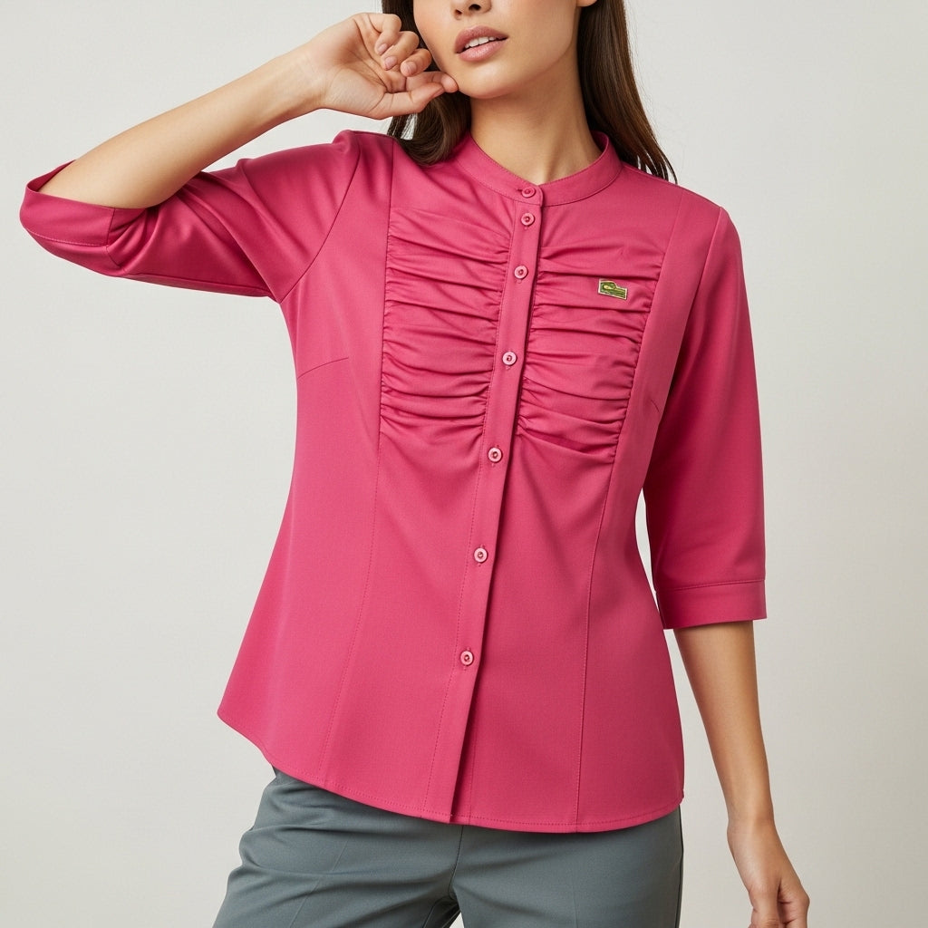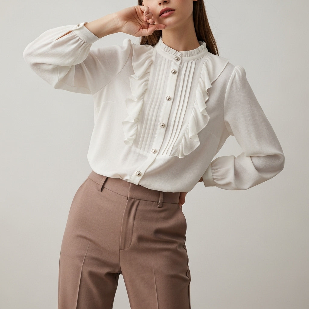 Bluse til kvinder med flæser og dekorative knapper