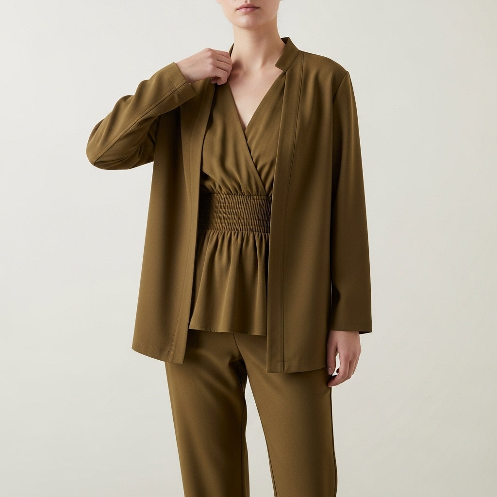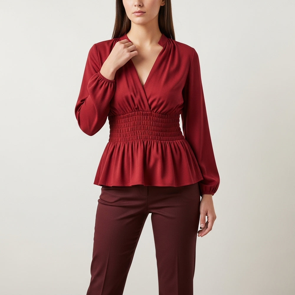 Bluse til kvinder med dyb V-hals og rynket talje