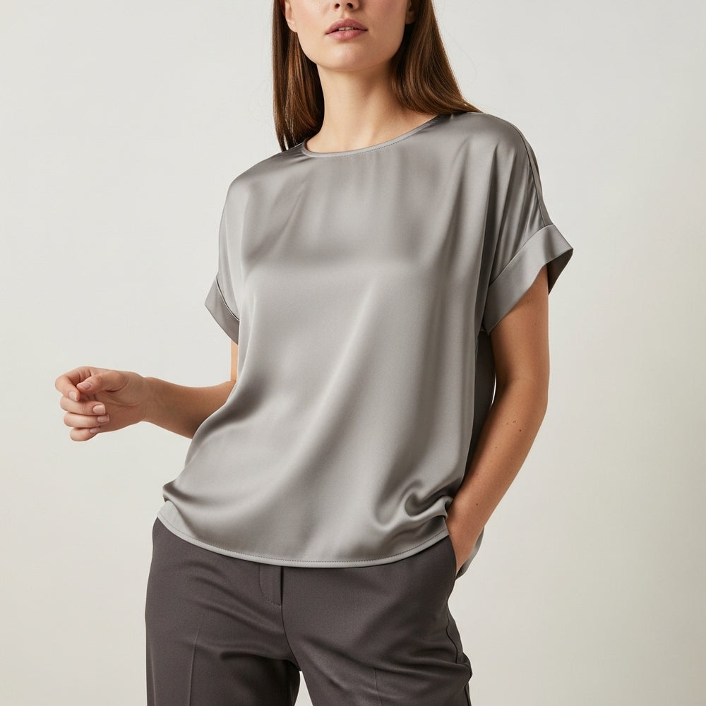 Kortærmet satinbluse til kvinder i afslappet pasform