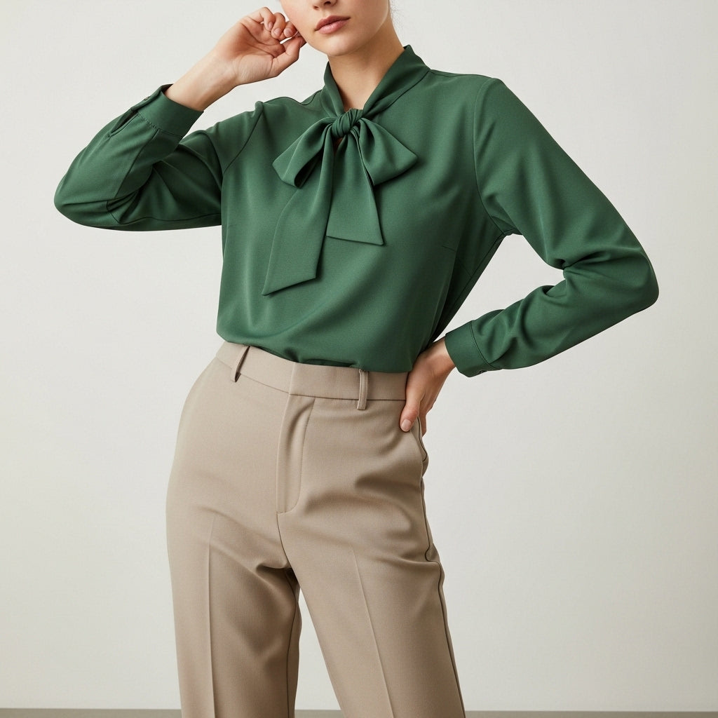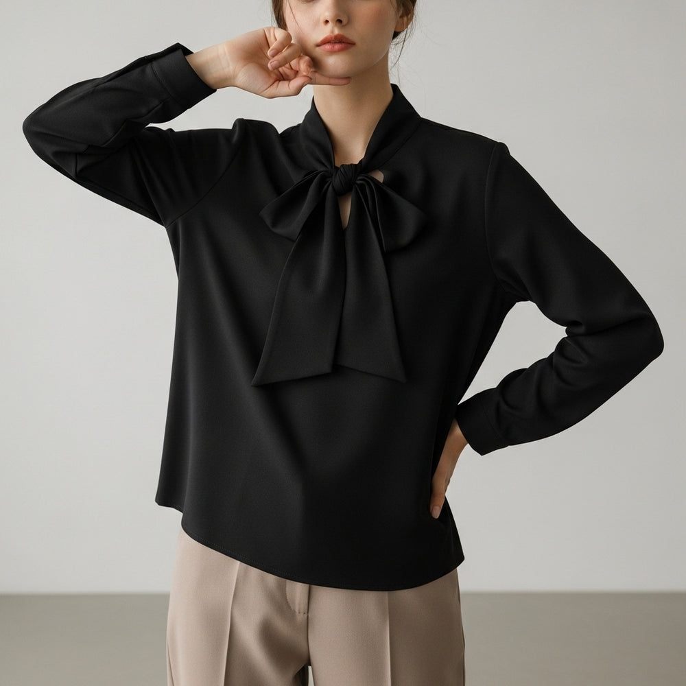 Langærmet bluse til kvinder med sløjfehals