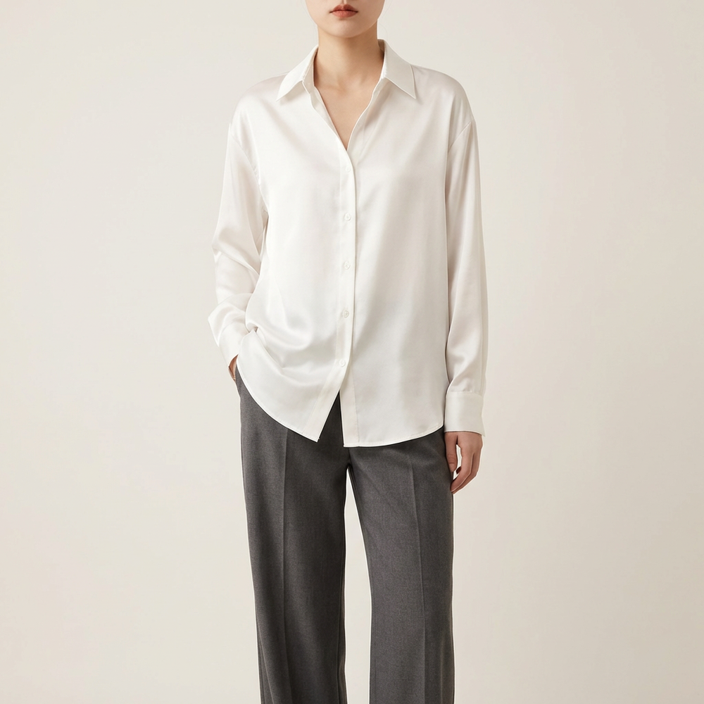 Dame Afslappet Arbejdstøj Løstsiddende Satinbluser