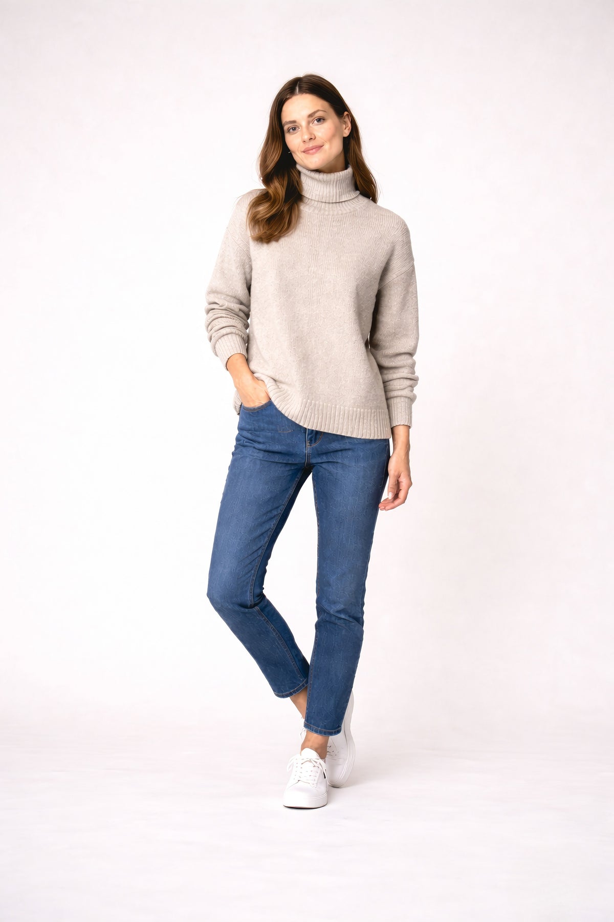 Bestil denne rullekravetrøje og tilføj et alsidigt og komfortabelt element til din garderobe.